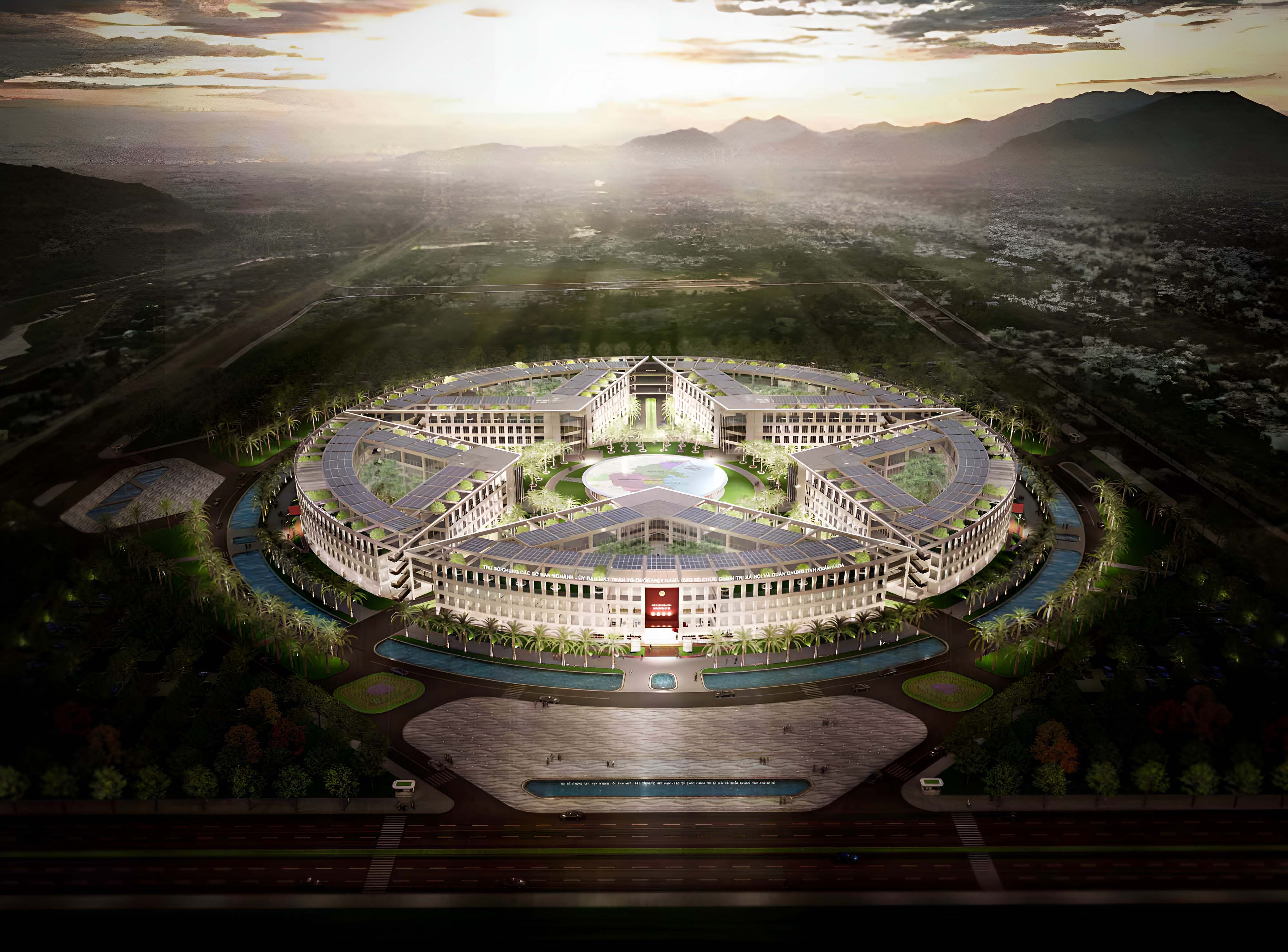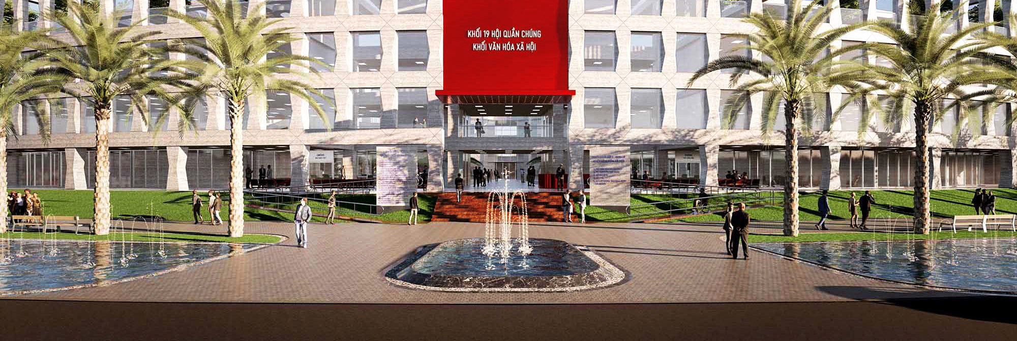 * Lakes running around the building create microclimate and create landscape balance. It also has the meaning of evoking the sea surface of a province with a long coastline and the image of the sea is very familiar to the people.