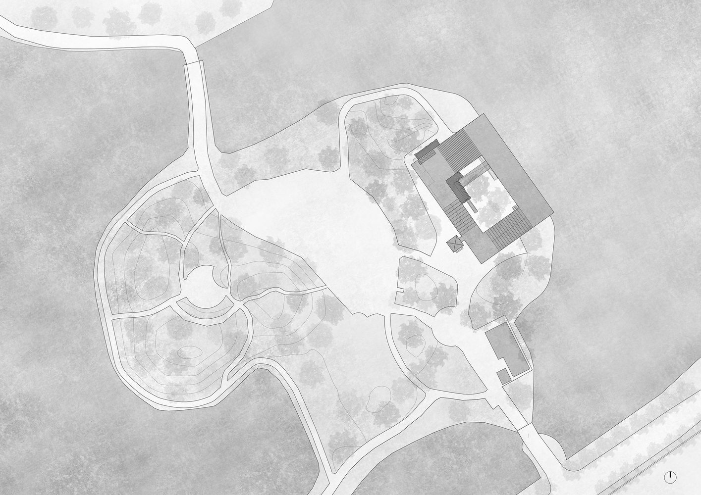 The journey entwines the existing urban context and the landscape with a simple but spatially diverse sequence.