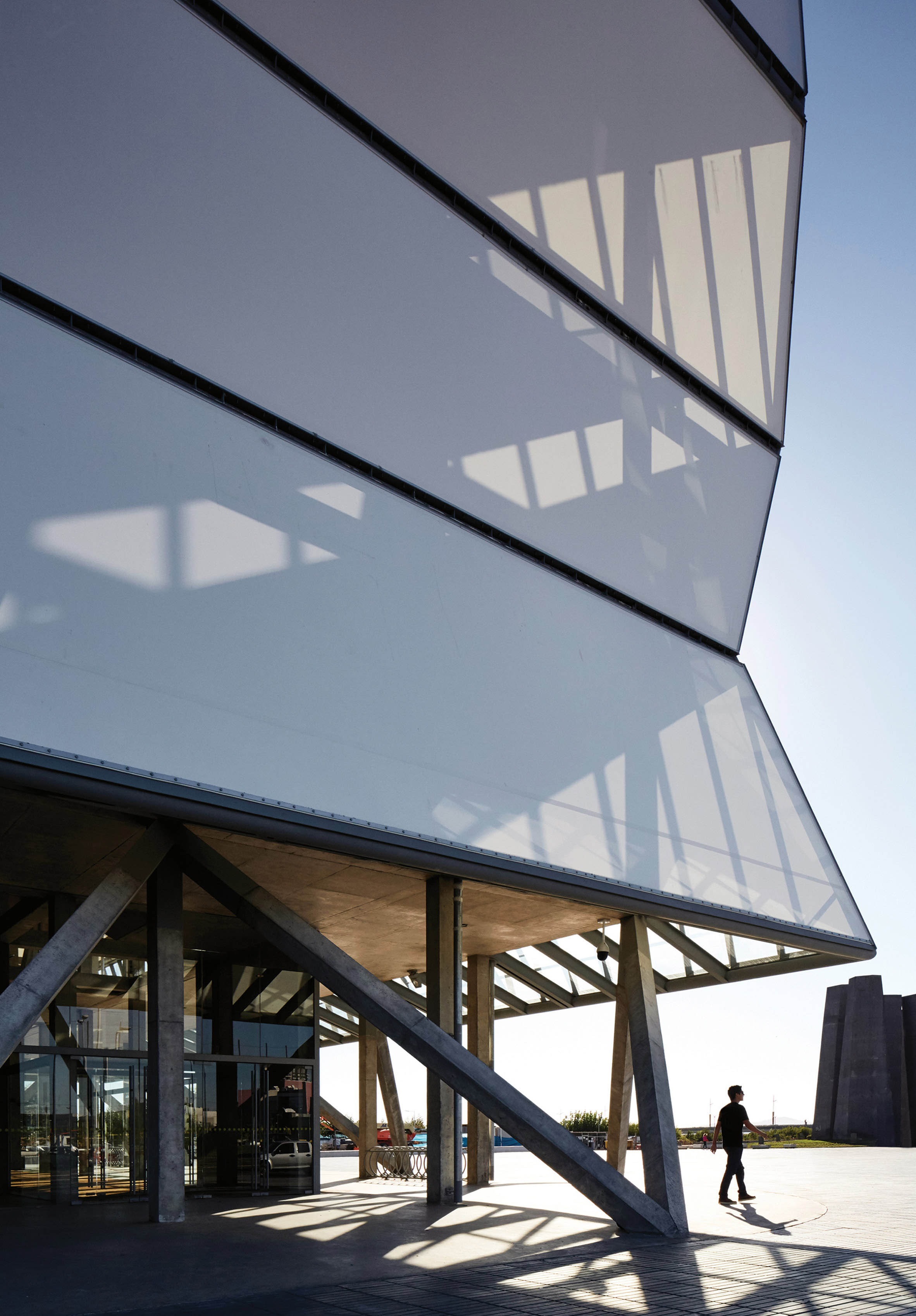 Teatro Regional del Bío-Bío occupies the river’s edge as a disciplined composition of volume and skin. The envelope is layered with carefully engineered semi-translucent polycarbonate cladding, mounted over a steel frame, that modulates light and supports acoustic performance. The façade neither conceals nor reveals entirely – by day, it filters light to minimize glare within the building; by night, it radiates a luminescent glow. The building is organized as a series of carefully proportioned blocks including performance halls and rehearsal rooms. Radić demonstrates that civic architecture can achieve presence without monumentality, structured without excess yet luminous without display.