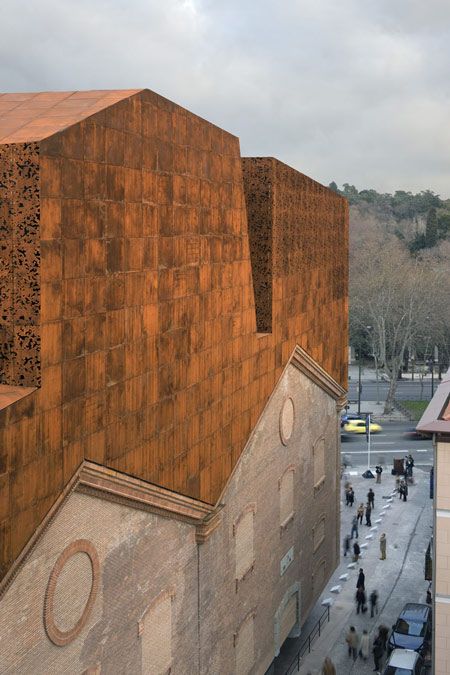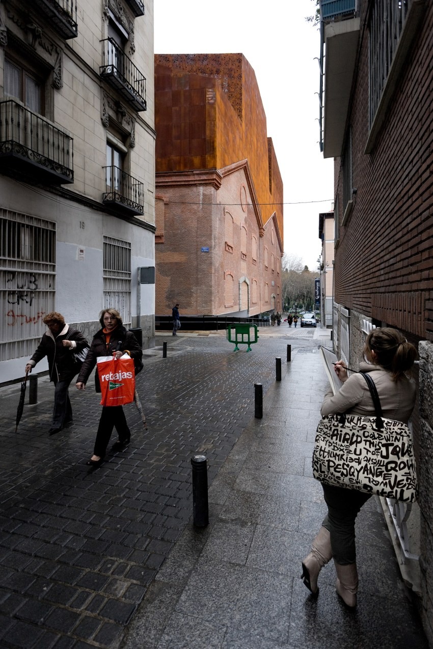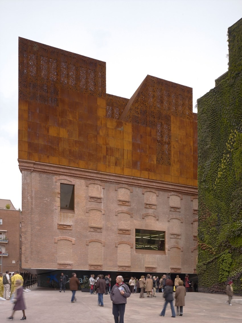 The CaixaForum is conceived as an urban magnet attracting not only art-lovers but all people of Madrid and from outside. The attraction will not only be CaixaForum's cultural program, but also the building itself, insofar that its heavy mass, is detached from the ground in apparent defiance of the laws of gravity and, in a real sense, draws the visitors inside.