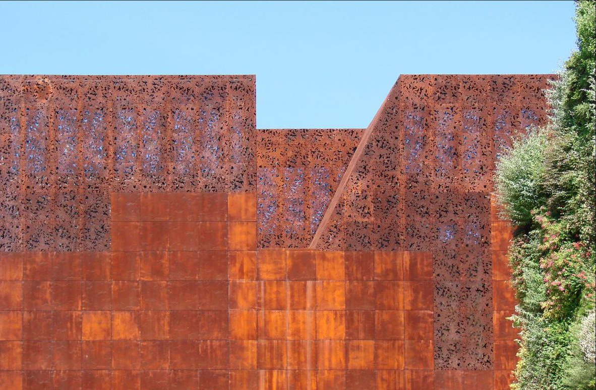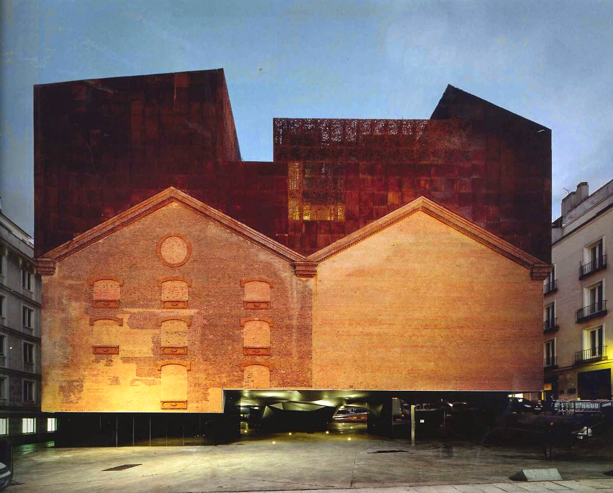 The CaixaForum-Madrid stands on an advantageous site facing the Paseo del Prado and the Botanical Garden vis à vis. This new address for the arts is located in an area occupied until now by unspectacular urban structures, the Central Eléctrica Power Station, and a gas station. The classified brick walls of the former power station are reminiscences of the early industrial age in Madrid, while the gas station, a purely functional structure, was clearly out of place. Like a vineyard that could never develop its full potential because it was planted with the wrong grape, this prominent location could not develop its full potential. The demolition of the gas station created a small plaza between the Paseo del Prado and the new CaixaForum in the converted power station.