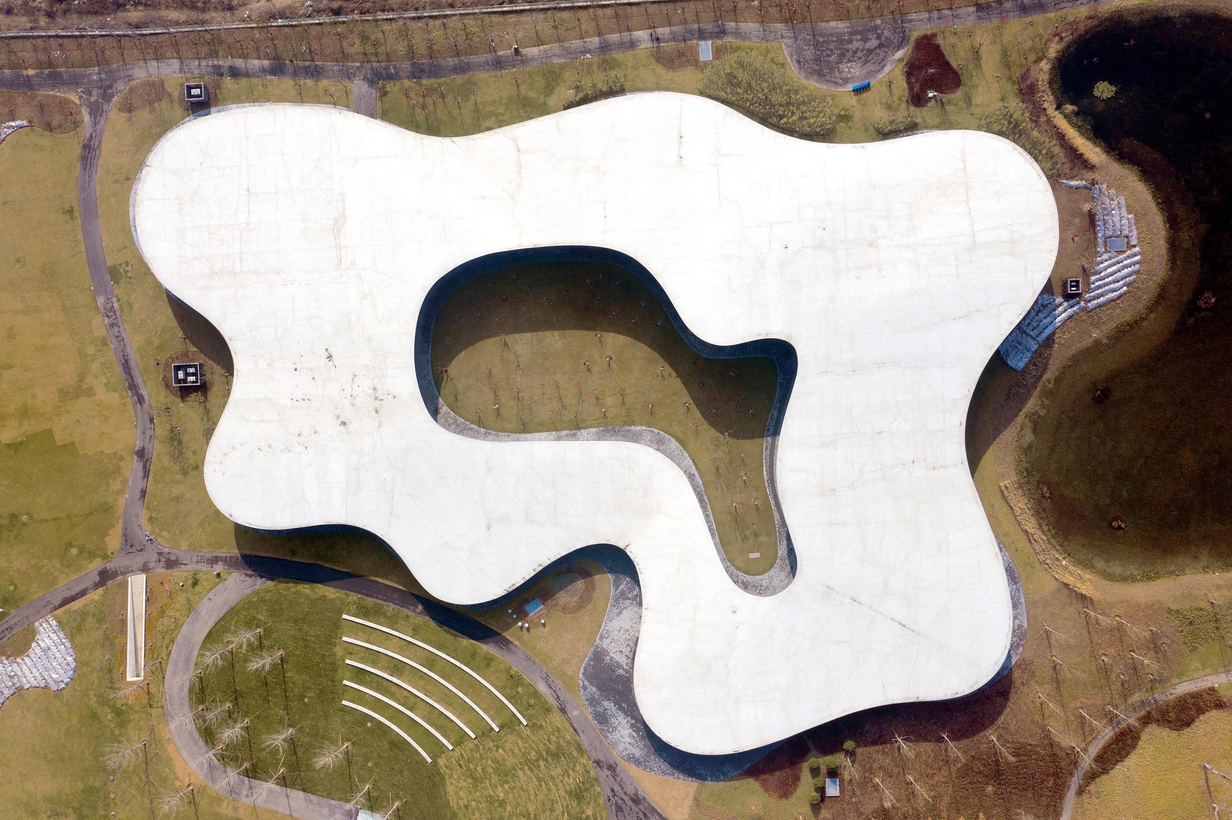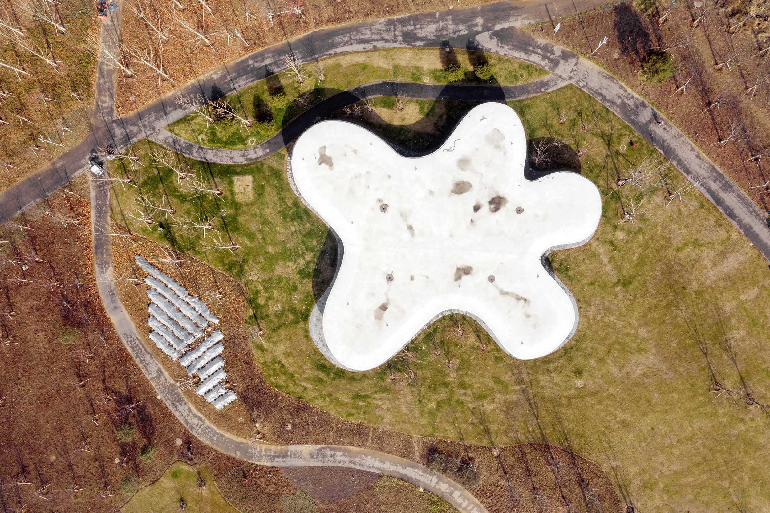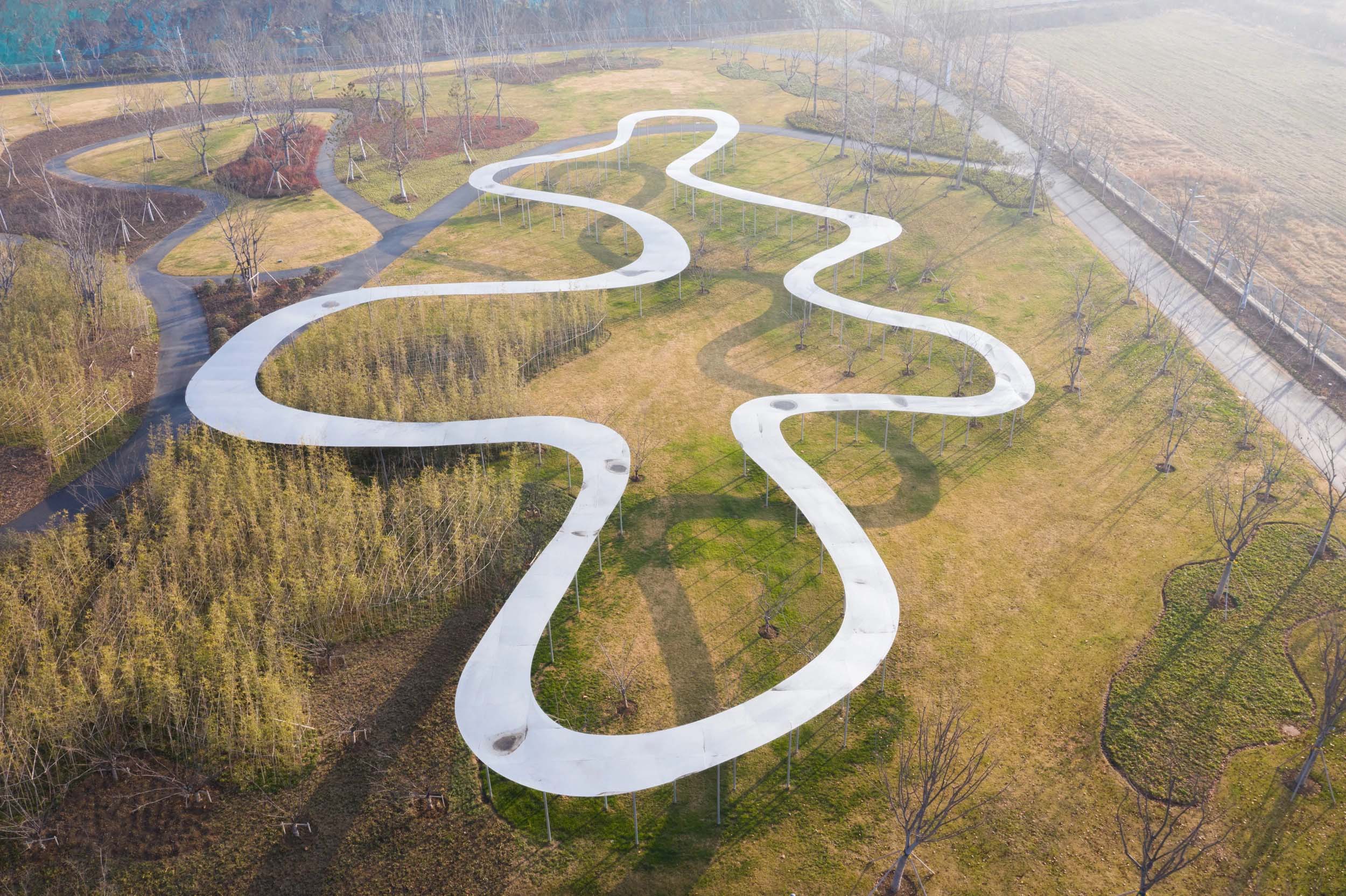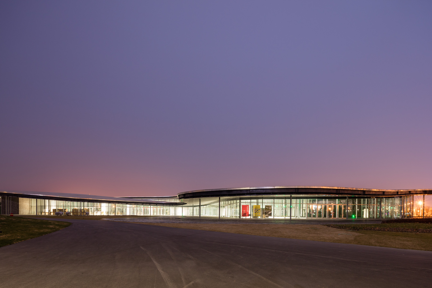 This project was to design a museum with a park and café in Jining City, Shandong Province, China. It was completed in May 2019. The site is in part of a large development area about twenty minutes by car from the city. This is an extensive development project that will become a new cultural centre of Jining City. The plan includes four cultural facilities including a library, three different types of museums, commercial facilities, an office, and a park. This new art museum was planned inside the park. The site itself is surrounded by nature with a large lake adjacent to the property, as well as greenery and some waterfront space inside the lot.