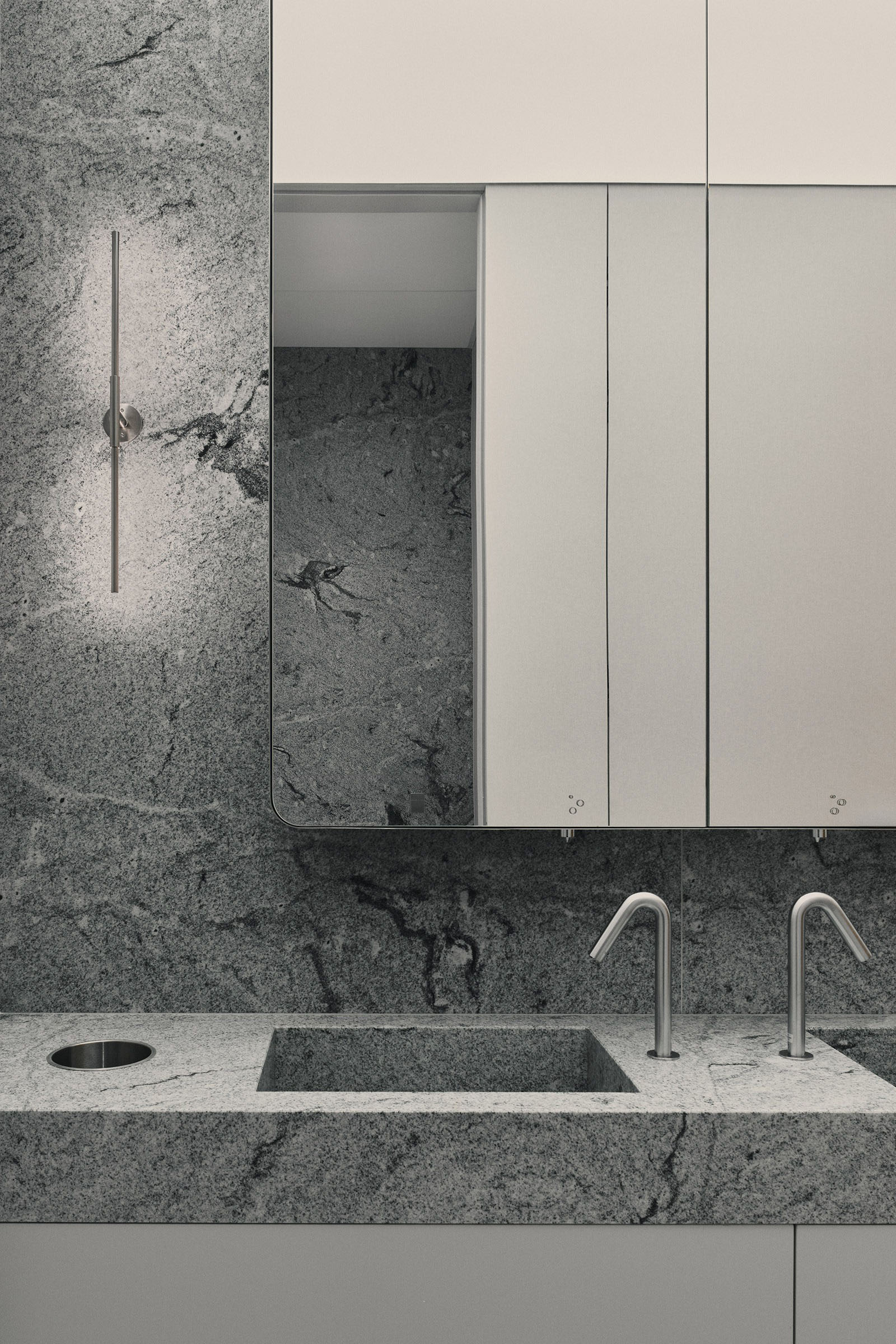 Nature is a constant presence within Pracownia, not merely as a backdrop but as an active participant in the architectural composition. Stone slabs extend seamlessly from interior to garden, reinforcing the continuum between built and natural. Vegetation introduced on the upper floor, nourished by carefully placed skylights, punctuates the workspaces with a sense of life and renewal.