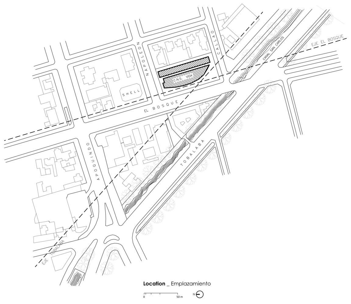 The site borders El Bosque Avenue and two smaller streets. Its virtual southern boundary is Tobalaba Avenue, which diagonally crosses the area along with the San Carlos Canal.